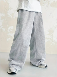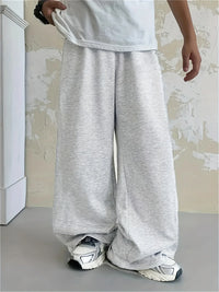 Loose, straight-leg gray trousers. Soft, everyday pants. Unisex sweatpants. All-season cotton streetwear. pants men