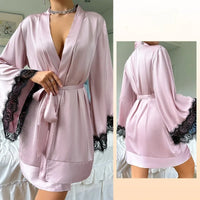 Women's New Pajamas Pajamas Bathrobes Long-sleeved Lace Pajamas Loungewear